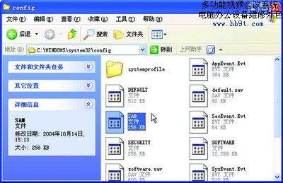 眾所周知,Windows 2000的密碼存放在系統(tǒng)所在的WinNT\System 32\CONFIG(如果是Windows XP,則目錄為Windows\System 32\Config)下的SAM文件(如圖1)中,SAM文件即賬號(hào)密碼數(shù)據(jù)庫文件。當(dāng)我們登陸系統(tǒng)時(shí),系統(tǒng)會(huì)自動(dòng)地和Config中的SAM校對(duì),如發(fā)現(xiàn)此次密碼和用戶名與SAM文件中的加密數(shù)據(jù)全都符合時(shí),你就會(huì)順利登陸;如果錯(cuò)誤則無法登陸。既然如此,我們的第一個(gè)方法就產(chǎn)生了——?jiǎng)h除SAM文件來恢復(fù)密碼。